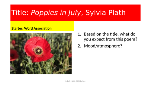 Poppies In July Sylvia Plath Teaching Resources